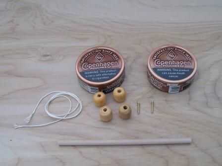 Se me olvidó ponerlo en la foto, pero también necesitará un pedazo de madera de 3/4 pulgada de espesor y sólo un poco más grande entonces las latas.