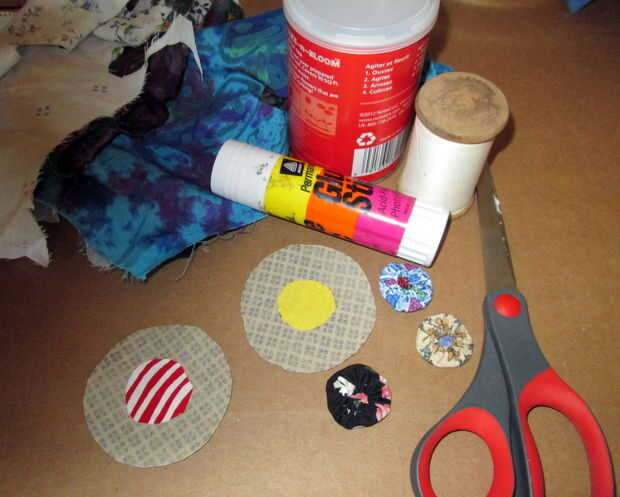 - Seleccionar un círculo para trazar (puede, plato, tapa de plástico o podría hacer una plantilla de círculo de cartón delgado), traza el círculo en la tela.