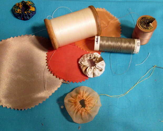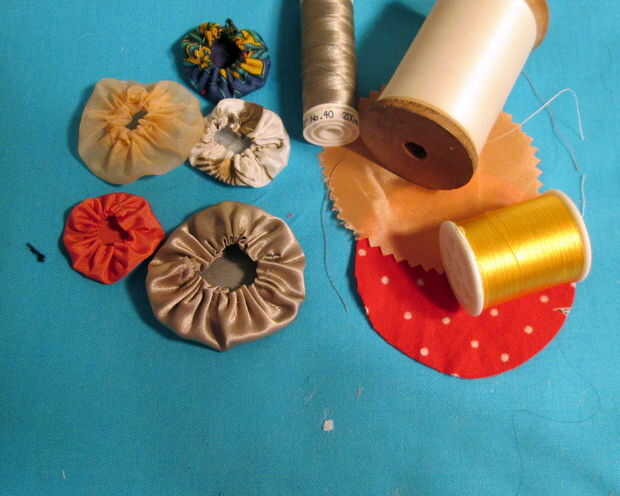 La mejor parte acerca de yo-yo de por mi es que voy a utilizar algunos de los restos poco de tela bonita que yo no puedo soportar para tirar, pero realmente no tienen un uso para. E incluso hice yo-yo de retazos de tela de organza, tafetán y algún tipo de tela muy escarpada. Esto no sería algo que podría utilizar para tejidos generalmente, pero para este proyecto son muy adaptables. Puedo ver un colgante de pared con corte de tela en mi futuro.