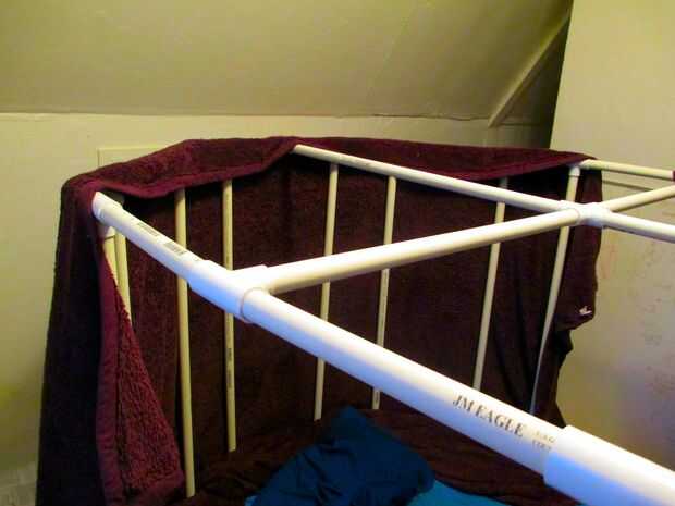 Doblar el borde de la manta sobre el riel superior y el perno de seguridad para sí mismo. En las puertas, hacer dos mantas extender más allá del soporte del tejado centro, superpuestos entre sí, para ayudar a mantener la aleta de la puerta cerrada. Fijando el segundo de ellos exige metiendo un poco y es complicado con el perno de seguridad.