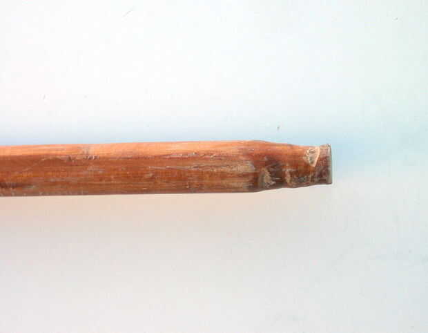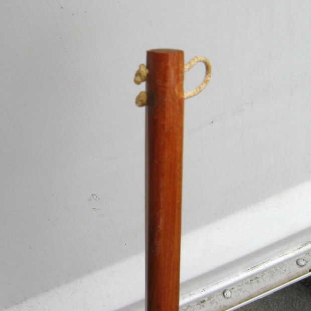 Luego perforar dos agujeros de 1/8" en el otro extremo de la viga y había añadido un lazo de cable a través de los orificios. Até el lazo sobre un palo de enrejado para conseguir el tamaño correcto. Derritió los extremos en gotas para evitar los nudos resbalen. Cuando barnizado toda la cosa había barnizado el lazo también.