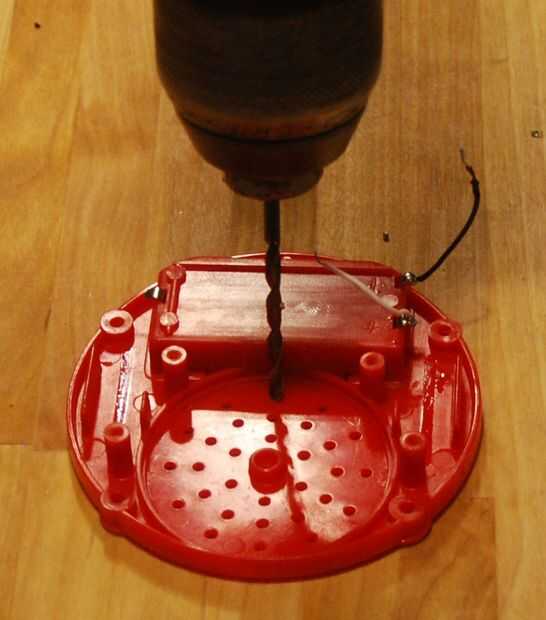 Opté por el agujero más cercano en el compartimento de la batería y amplió. El LED es un LED, por lo que se puede utilizar ya sea un pedacito de taladro de 3mm, o, si prefiere la propia libertad unidades, un 1/8" broca de 3mm será grande. Sólo la broca del portabrocas y perfore el agujero.