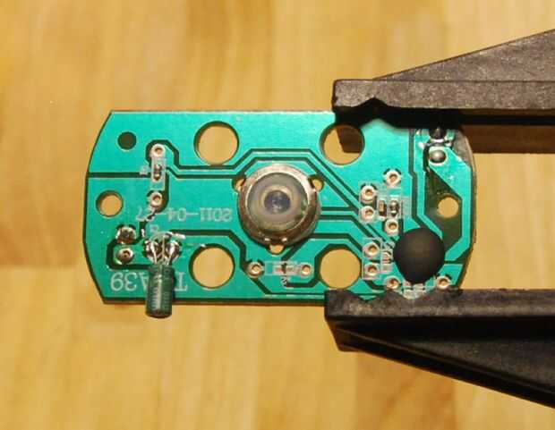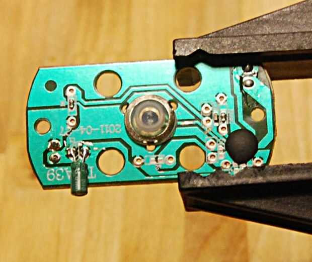 Como dije antes, la placa de circuito desde el botón fácil es agradable en que monta un interruptor de manera que se alinee bien con el botón cuando se presiona. El único problema con este circuito es que sólo tiene agujeros de soldadura conexión a un lado del interruptor. Eso significa que tendremos que idear otra forma de soldar se conecte al conmutador.