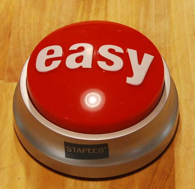 El botón de grapas "Fácil" es ya un clásico escritorio, pero sería mucho más divertido si dice lo que quieras. Sé que algunas personas ya han hecho hacks como este, pero esto es menos costoso que muchos de ellos. También, Staples ha cambiado rec