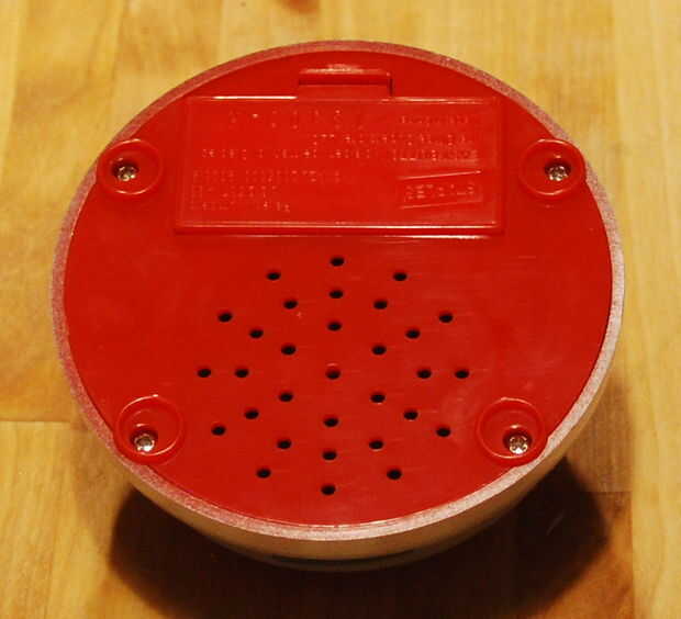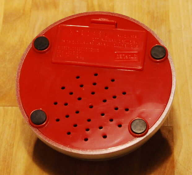 Entonces, voltee el botón fácil y retire las pilas. Verá cuatro pequeños pies de goma. Sí, esta cosa tiene soporte completo de la LRF. Utilice su cuchillo para levantarlas. Es fácil y hay sólo un pequeño adhesivo sosteniendo. Si limpiar el adhesivo, o sustituirla, se pueden reutilizar los pies cuando haya terminado.