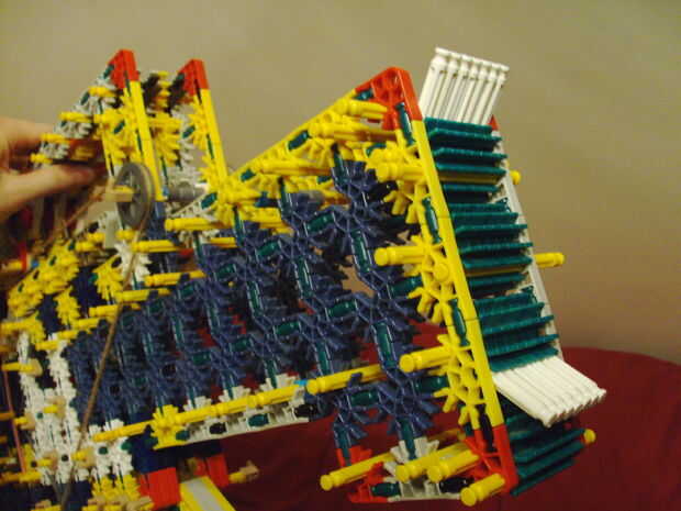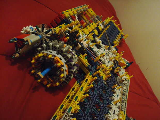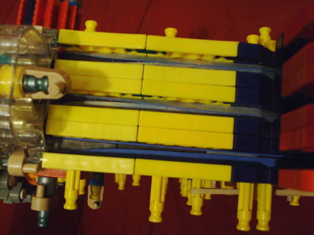 La sección que sobresale frente a la bomba es descansar en las cosas. Los conectores blanco en la culata evitar que resbale cuando armado y hacia abajo por el peso. Utiliza un sistema de alternancia del gatillo y tres barriles. También utiliza un nuevo sistema para hacer girar una torreta TR-18.