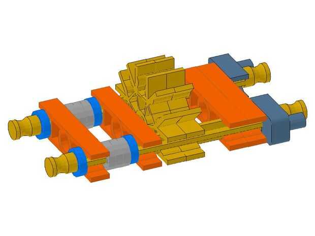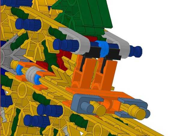 1: Build this. 2: Conecte al rifle. 3,4: añadir dos barras azules, conectores y dos, dos separadores azules, un espaciador gris y dos conectores naranja como se muestra y conocido. Vaya al paso siguiente.