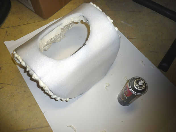 He añadido un collar de cartón para que coincida con el que está en el casco construido entonces más espuma para alisar en.