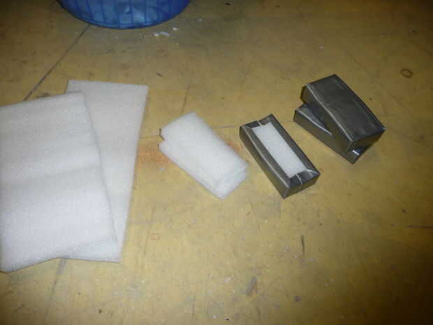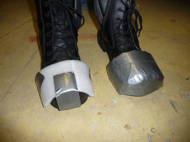 Tomé un viejo par de botas de invierno y grabado de la hoja de la espuma de poliestireno alrededor del dedo del pie como las ponderada botas que usan los buzos. La cinta americana plata mira Dios suficiente que no necesita ser pintado.