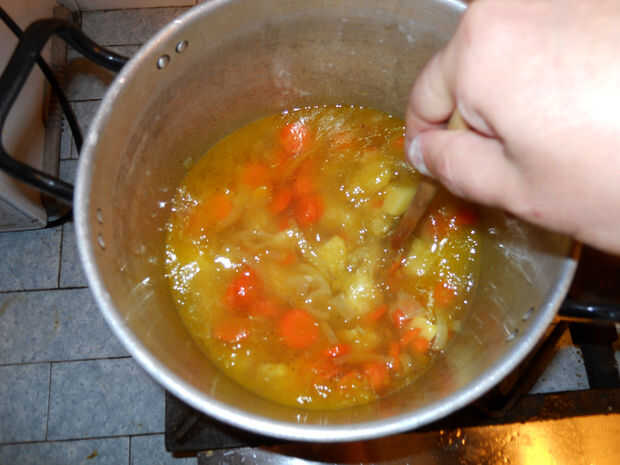 Llene la bandeja con agua levemente sobre el nivel de verduras. Cocinar a punto de ebullición, tardará unos 20 minutos, sólo Mantenga mezcla y degustación para una mejor noción del punto de cocción.