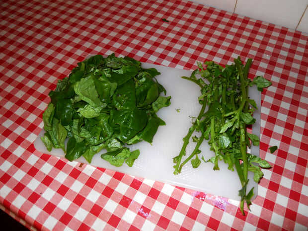 Tomar todas las hojas de las espinacas y desechar el resto. No olvides lavarles muy bien!!!