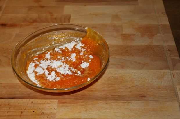 Esta pasta es como la comida de bebé, up.which muy bien roto puede pasar a través de una boquilla de glaseado. Ya que es un poco ligera de consistencia añadir un poco de azúcar glas y diluye la harina de maíz. Luego lo cociné hasta que llegó a ser un poco gruesa de consistencia.