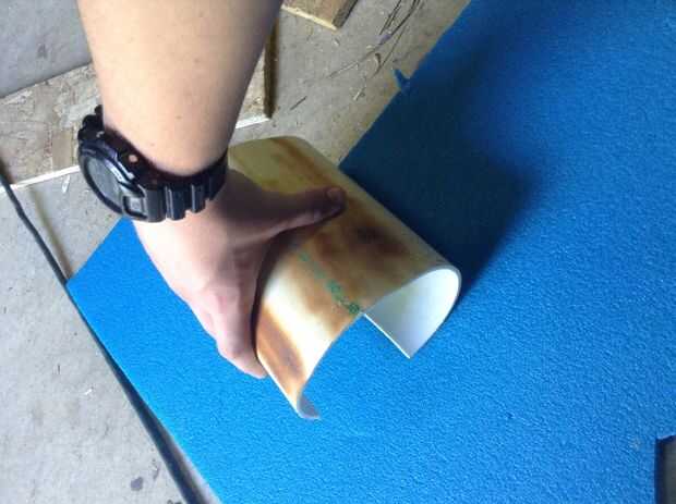 Darse cerca de 1/4 de pulgada de espacio adicional en la espuma, para evitar que el borde del tubo de excavación en la pantorrilla.