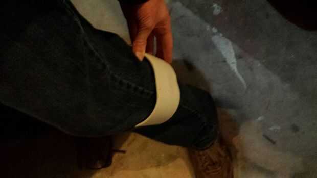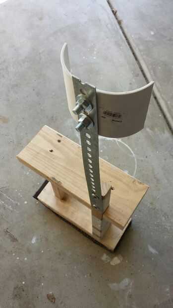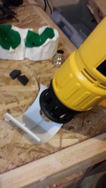 Luego usé un acoplamiento de PVC de 4" corte a la mitad de la pieza que le instale a mi pierna. Usar una pistola de calor, formó a la forma de mi pantorrilla.