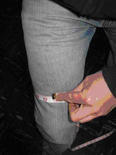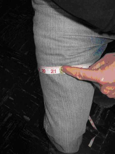 El muslo debe medirse en 2 lugares; el primero como unas 4 pulgadas por encima de su rodilla y el segundo es aproximadamente al punto medio.