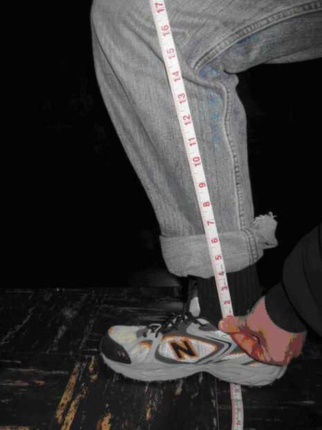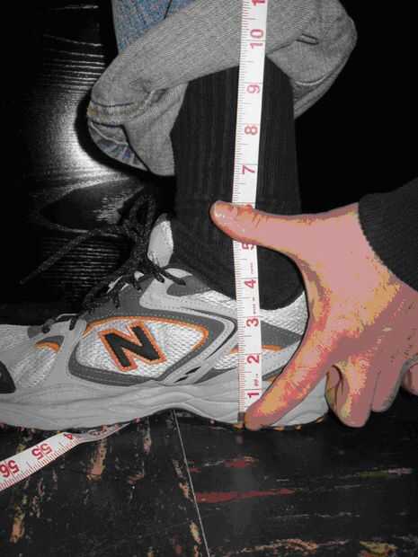 La siguiente se mide usando los zapatos que va a usar mientras se está usando los zancos. Con sus zapatos encendido usted tendrá que medir la distancia desde el suelo hasta el punto medio de su tobillo.