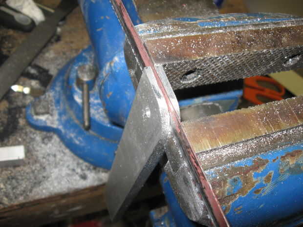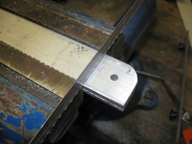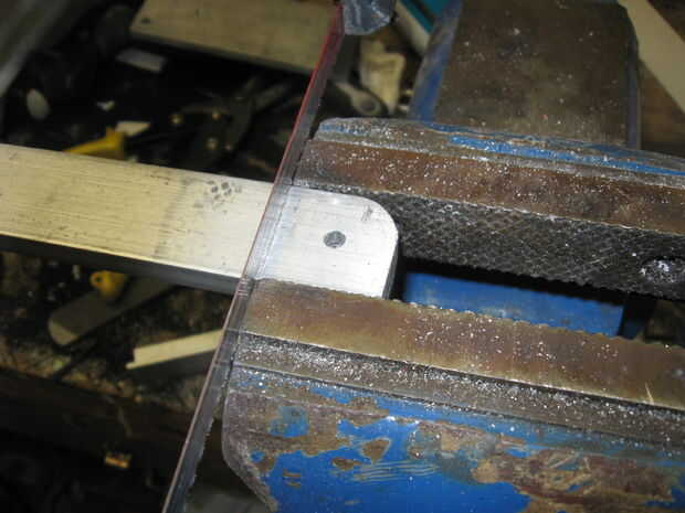 Usted tendrá que quitar un área mide 1/4 de pulgada de espesor por 1,25 pulgadas de largo entonces recortar una esquina de la zona de corte como se muestra en el dibujo. El ajuste se logra cortando con una sierra para metales y utilizando el archivo de hijo de puta para hacer una curva de radio redondo agradable.