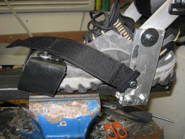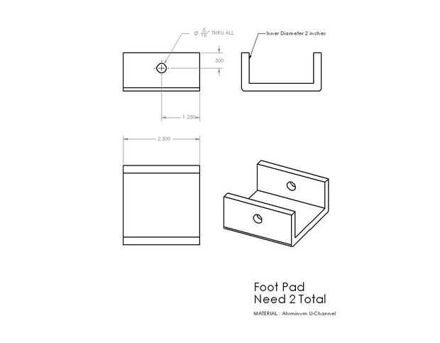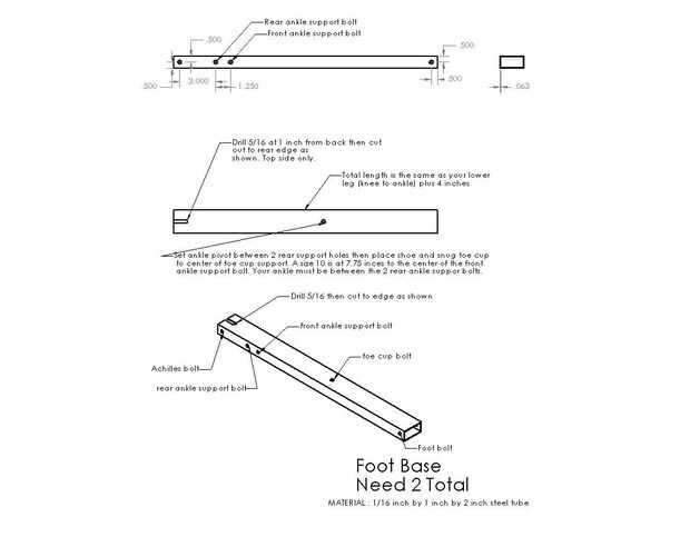 El pie es un solo corte de un aluminio C-canal que es de 2,5 pulgadas de largo. El pie está diseñado para girar en cada movimiento y como tal requiere un gran control de equilibrio. Si usted desea puede apretar el tornillo de pie y hacer que el pie casi rígidos usando el 5/16 con perno. Esto le permitirá equilibrar con menos esfuerzo. El pie es un perfil relativamente pequeño que puede tener cualquier número de materiales para proporcionar una superficie más grande del pie.