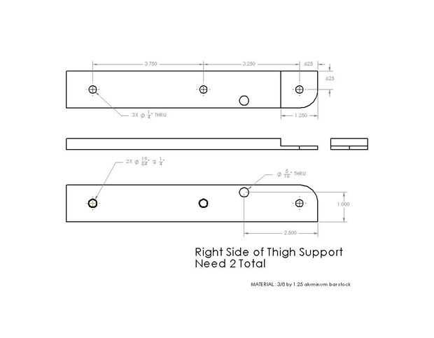 Consulte los dibujos del muslo de apoyo y soporte inferior de la pierna. Las piezas de soporte del muslo están dibujadas a escala real y pueden ser utilizadas como una plantilla si es necesario. Hay 4 en total que necesita para estar en forma.