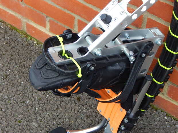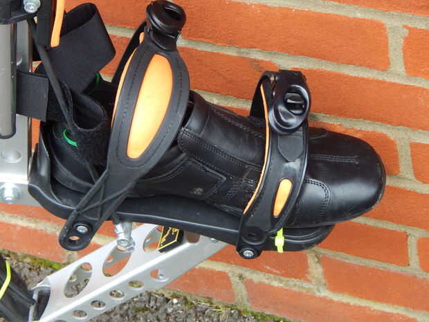 Encontrar un par de buenos puntos de fijación en los talones y la planta del pie, hacer un par de agujeros con cuidado y el cable de amarre a la estructura.