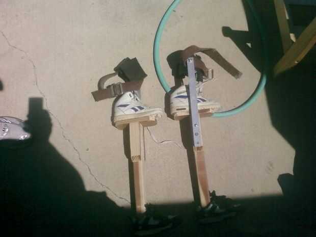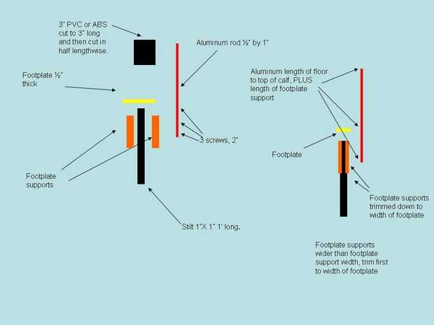 Corte la placa base por lo que es tan amplia como el zapato de portadores de zancos. No hay que ser más amplio. Los cantos para evitar raspaduras al caminar.
