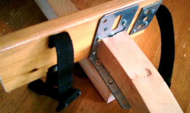 - Para la Unión usé ángulos de metal, generalmente utilizados para la construcción inmobiliaria, tan fuerte como creo. Estos donde también se utiliza para las "paradas de tobillo". Acababa de usar tornillos de cabeza Phillips normales