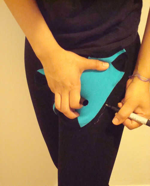 Dibujar un esquema del calcetín en las medias utilizando el lápiz lavable