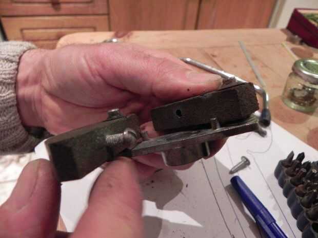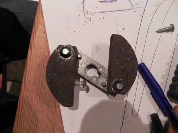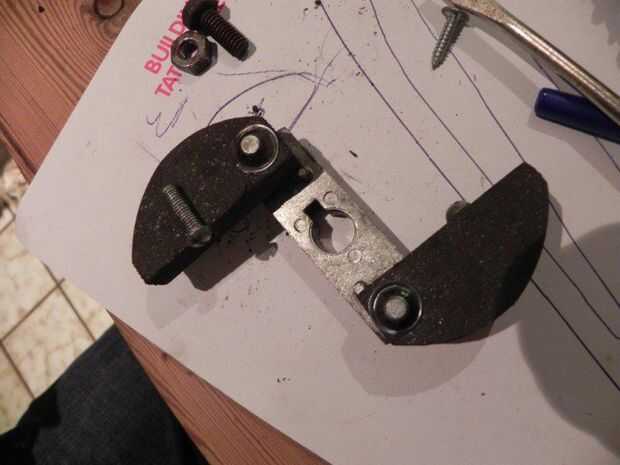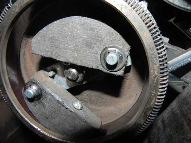 Desgaste del zapato ha provocado que el peso de los zapatos para reducir, que reduce la fuerza con que zapatos en contacto con el borde interior de la vivienda. Por lo que necesitamos ya sea comprar un nuevo par de zapatos de embrague (en cuyo caso obtener repuestos y vaya al paso 4) o agregar peso al extremo de la zapata más alejado el zapato cojinete/pivote. Esto debe hacerse sin afectar la superficie de contacto de los zapatos, incluso cuando se produce un desgaste más razonable. Esto podría hacerse mediante la construcción de araldite/epoxy en las caras interiores largo plano rectangulares de la par de zapatos (las caras que se enfrentan entre sí, que posiblemente involucra presentación a forma (ADVERTENCIA amianto especial para este procedimiento - no hagas esto si no al día sobre los peligros del asbesto). O como se muestra en la figura 4 y 5 y 6 se puede encontrar el tamaño adecuado par emparejado de pernos, cuidadosamente marque (simétricamente) y perfore (amianto alerta - y trata de no romper el contacto con la superficie) un piloto de talla ligeramente inferior en cara rectangular plana de cada zapato y atornillar el tornillo totalmente.