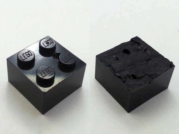 Decidí hacer una nueva cámara montaje encajando la conexión roscada de 1/4" dentro de un ladrillo LEGO. Corte el superior pedazos de ladrillo con una herramienta giratoria, luego alisar la superficie. Luego perforé un 10mm apertura a través del centro del ladrillo de la conexión roscada. Durante la perforación, el interior plástico post del ladrillo LEGO también salió.