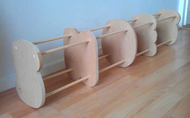 Puedes espaciar las letras a distancias iguales o crear espacios para los más pequeños y más grandes zapatos.