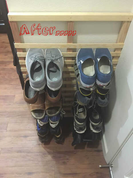 Bienvenido a mi medida, estante del zapato que construí en mi garaje. Con mal olor, zapatos mojados o sucios es un burdon que todo el mundo tiene que lidiar con. Teníamos montones de zapatos en diferentes salas, en los armarios y sótanos. Decidí que
