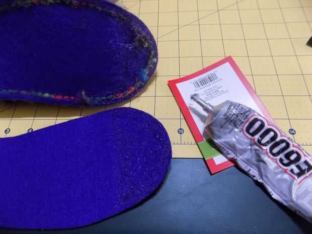 Pegue la segunda suela en la parte inferior con E-6000.