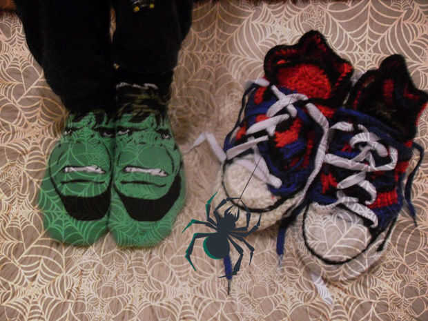 Y todo lo que queda es poner sus cordones y probar tus zapatillas... oh, espera! Quise enamorarme con tus zapatillas nuevas...! Zapatillas gran para los grandes Superheroes...!!!!!!