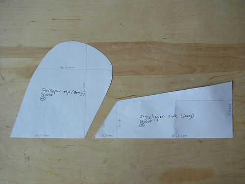 Yo, yo tenía un ir en el diseño de un modelo de zapatilla, y aunque funciona, no es óptimo. No dude en copiar y modificarlo. Si decides a coser, usted puede tomar las medidas de la imagen. Tengo un pie de tamaño europeo 39 - así que asegúrese de hacer los ajustes para su propio tamaño.