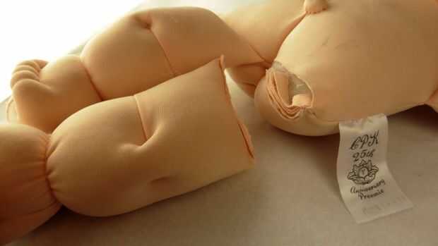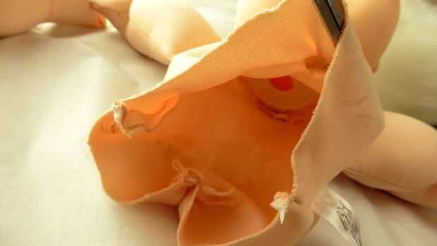 Tome su muñeca poco lindo y separar las piernas del cuerpo. Cuando corte las piernas lejos del cuerpo, asegúrese de no cortar la costura en la parte superior de las piernas. Que quieras ser cerrado en la parte superior, como salchichas pequeñas, con relleno de caer hacia fuera.