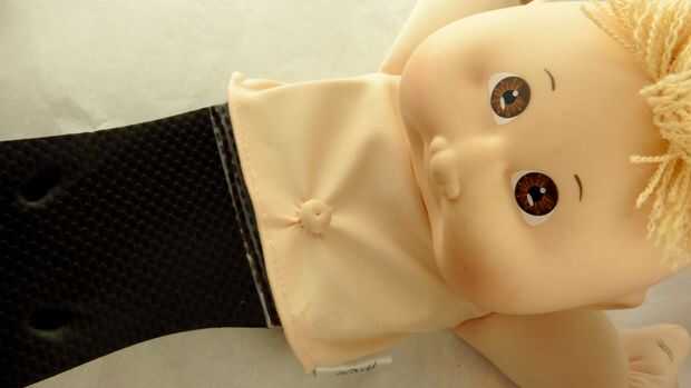 Medir la longitud del torso del bebé introduciendo el flip flop en la cavidad. Marcar la línea donde el extremo del torso con el flip flop.