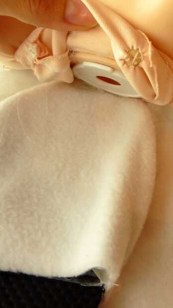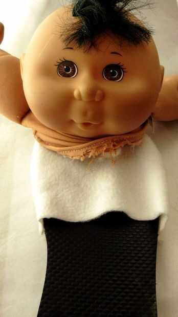 1. Si usas a un Kid de parches col, habrá un círculo de plástico duro en la base de la cabeza. Tomar esa base circular y colóquelo sobre la parte del paño grueso y suave de la zapatilla.