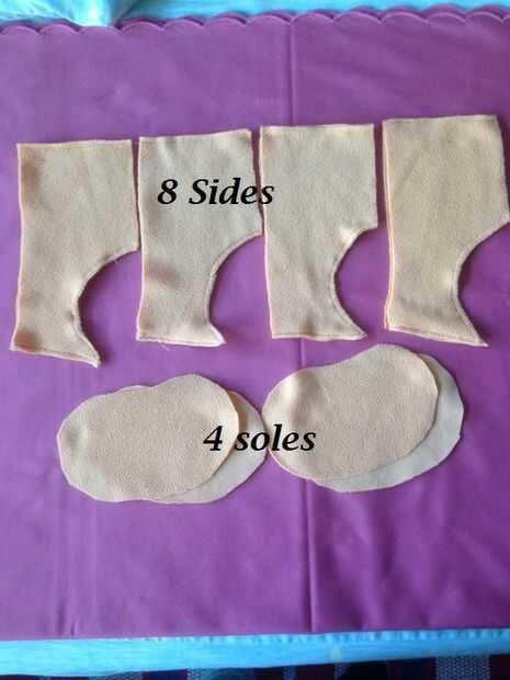 Necesita un total de 8 lados y 4 soles para hacer un par de zapatillas. Si está usando un suéter intento cortar con todas las piezas con la tela del suéter va en la misma dirección. Me han cosido ya en esta imagen simplemente ignor y vea el paso siguiente.