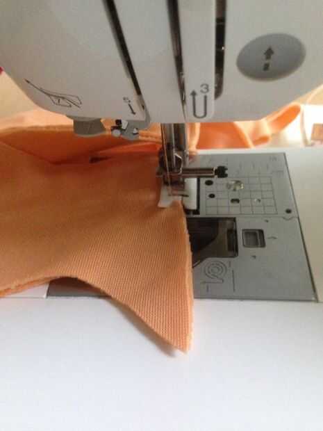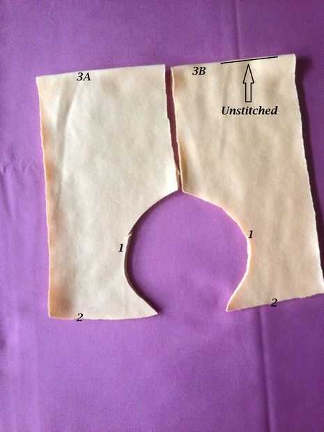 3B. coser hasta el talón de la línea manteniendo 1 1/2 pulgadas descosido en el centro para "dar vuelta". Ver imagen.