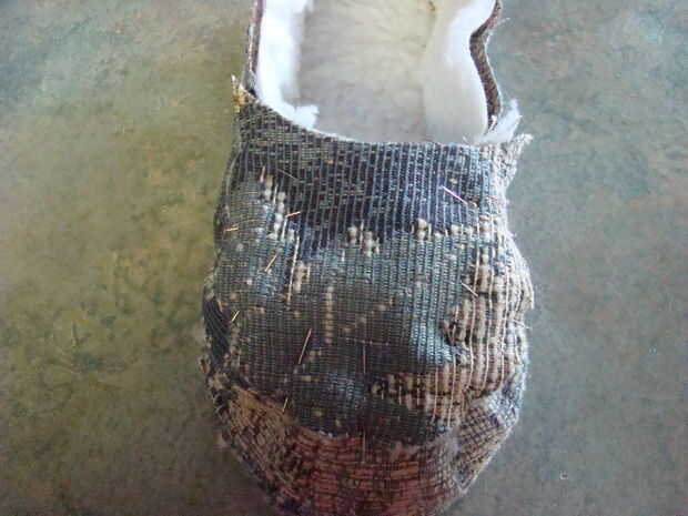 Luego cubrió la pieza superior de la zapatilla en la parte superior de la zona de recogida de los lados.