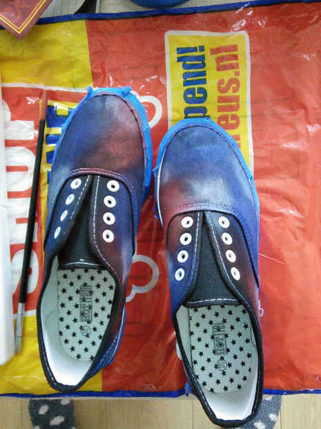 Puede utilizar la pintura blanca así como para mezclar las partes azules y rojas un poco mejores.