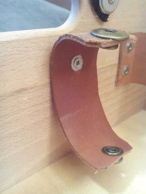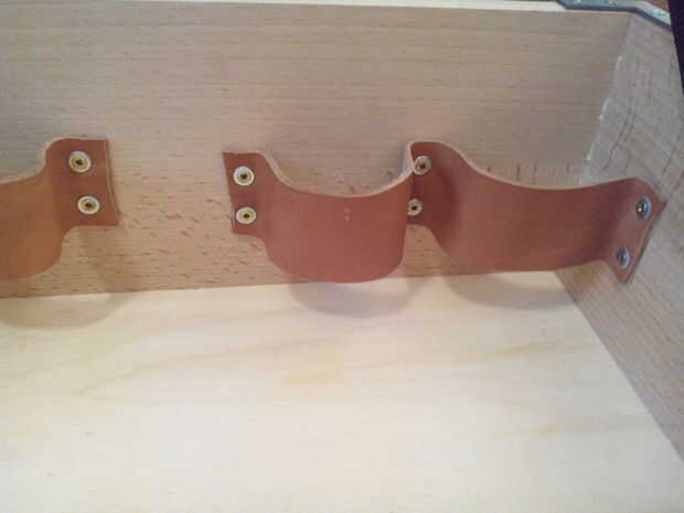 Rigidez en los bordes, pero sin topes, son solamente en la tapa. Me rayas de cuero cortado y montado con tornillos pequeños (de madera) y las arandelas para las botellas y para el calzado-hueso (aquí os adjunto la presión)