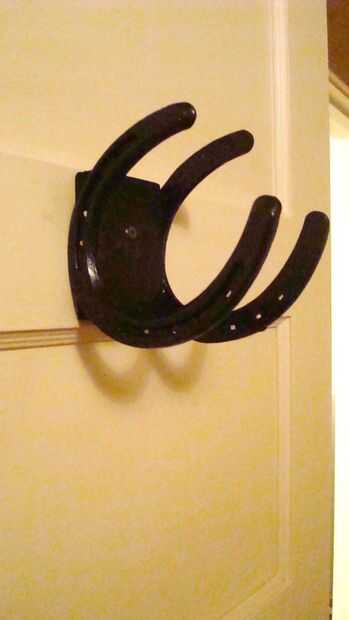 Hizo 10 ganchos de herraduras (que tenían de sus caballos) y montado en un tablero y clavado a una viga en la pared.
