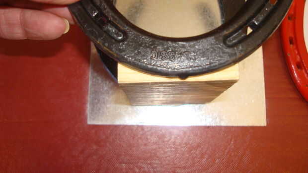 Aplicar una pequeña cantidad de pegamento a la herradura y la madera.