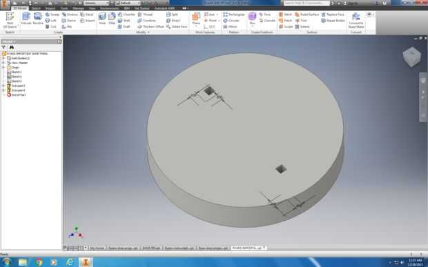 Volver a crear un nuevo dibujo. Hacer un círculo de 0,75 pulgadas de diámetro. Lo siento repetitivo pero esta es la parte final. Saca este círculo 0,25 pulgadas y pulse OK. Haga clic derecho en la parte superior del círculo y crear un dibujo nuevo. Hacer un círculo 0,18 pulgadas de diámetro y para sacar en el círculo de 0,125 pulgadas. Ahora Dale la vuelta y crear un nuevo dibujo en el otro lado. Hacer un cuadrado de aproximadamente 0,04 x 0,04 pulgadas en el extremo de cada uno en lados opuestos. No importa donde te los pones como no lo ponga cerca del círculo que hicimos en el otro lado.