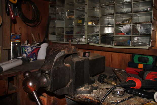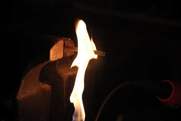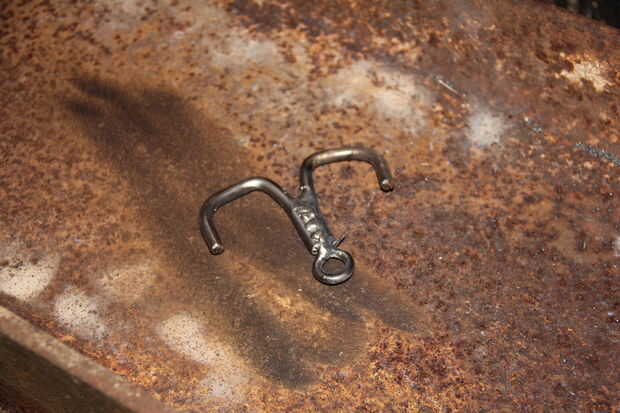 me pareció que la manera más fácil para doblar el tubo colocar el metal en una prensa y calentar tan caliente como podía.  Entonces, pude doblar en forma de gancho.  Hacerlo con ambas piezas.