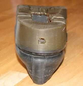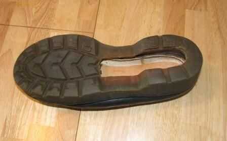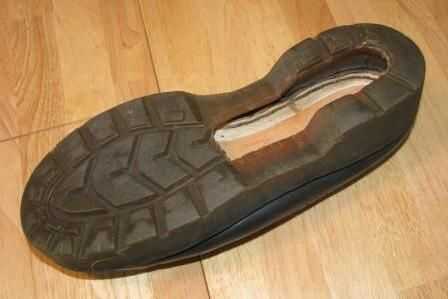 El primer paso consiste en ahuecar el zapato así que usted puede poner todas las cosas en él. Lo hice con unos alicates y un cuchillo. Trate de no mutilar el zapato y no corte hasta los bordes. Deje algunos goma a lo largo de los bordes como se indica para la integridad estructural.