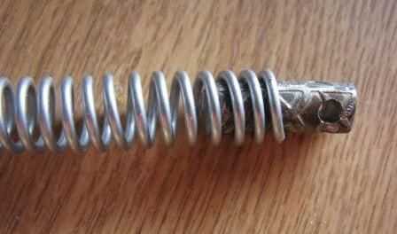 Comencé cortando un pequeño trozo de barra y poniendo un agujero en él. Esta irá entre las dos torres del bloque del trasero y el cable pasará por el agujero. Entonces, tengo un pequeño manantial y resbalaron sobre la barra.