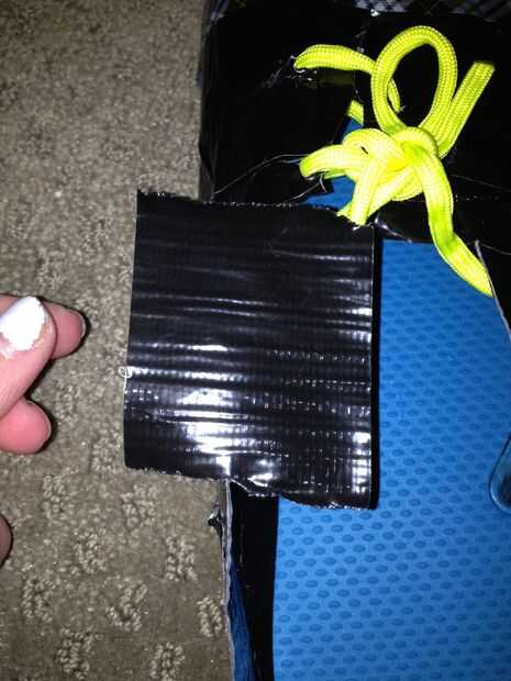 bien, por lo que deben tener conducto de cinta todo por ahora, zapatos de la cinta del conducto, calcetines, guantes, bolsos del ordenador portátil, chaquetas, todo. Pero una cosa no tiene, es una máscara de la cinta de conducto. La última parte de l