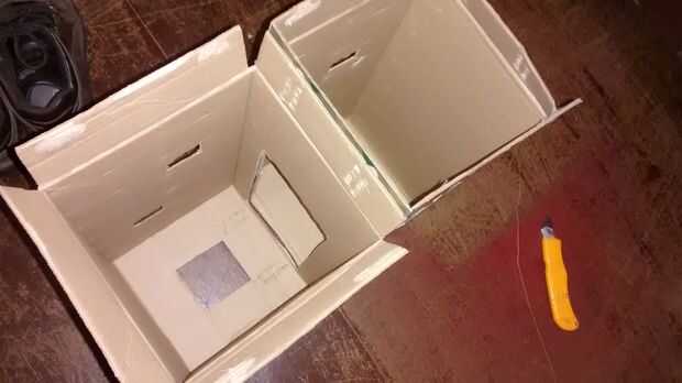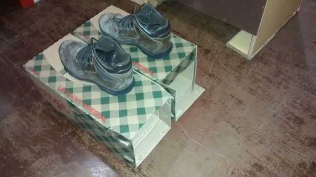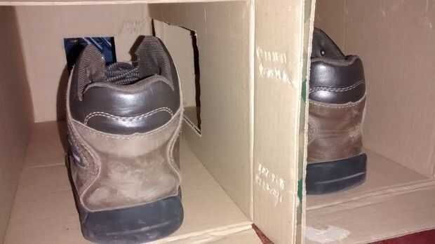 Por desgracia mis lámparas encajaba dentro de los zapatos totalmente, y una pequeña porción de ellos se ha dejado fuera, todo lo demás pero el zapato de la iluminación. Porque la radiación es bastante nociva, decidí incluir dentro de una caja. Puesto que había no hay cajas disponibles, he utilizado una caja de cartón de leche!